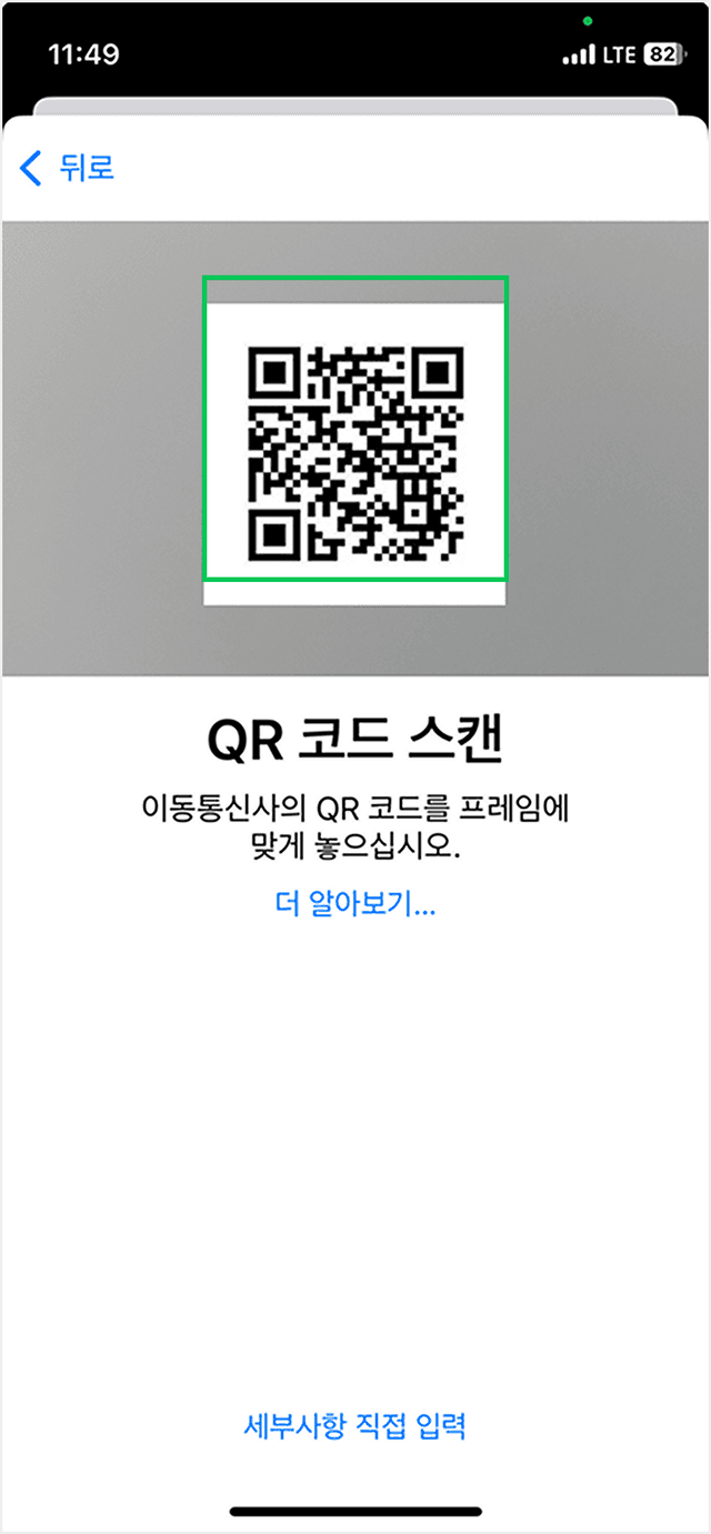 QR 코드 인식이나 eSIM 추가가 안될 경우, [설정] 메뉴에서 코드를 직접 입력해 주세요